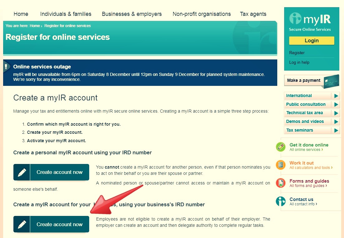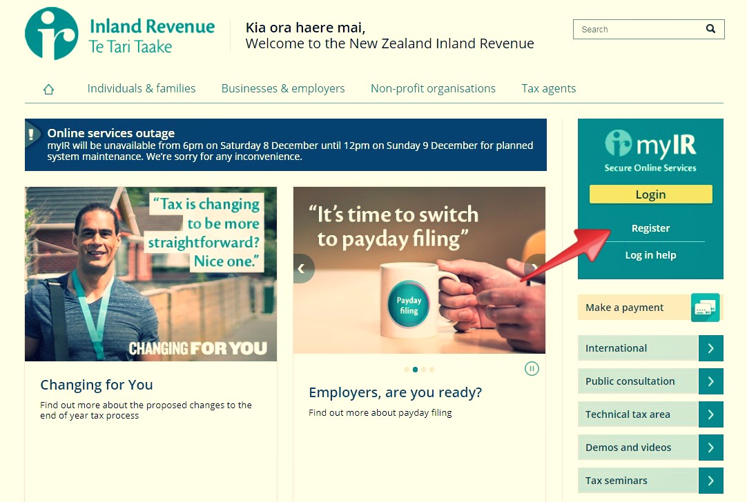 1. IRD 웹사이트에 접속하세요. (www.ird.govt.nz)
